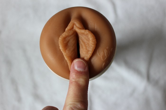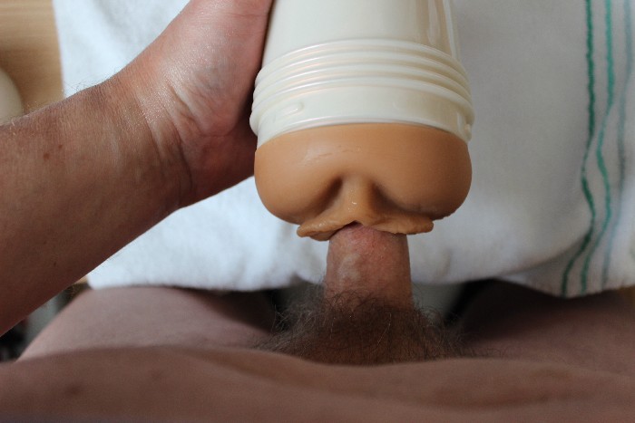 Die Schamlippen fühlen sich wie echte Haut an und das Gefühl an meiner Eichel bewirkt eine Gliedversteifung - ohne Zuhilfenahme meiner Hand! Mein kleiner Schwanz dringt soft in die künstliche Vagina ..