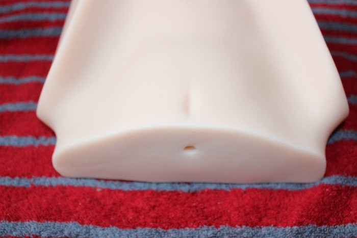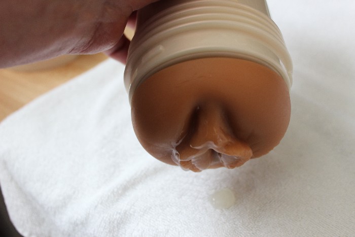 Die Reinigung ist relativ einfach, da der Masturbator zwei Ablauflöcher auf der Rückseite hat ..